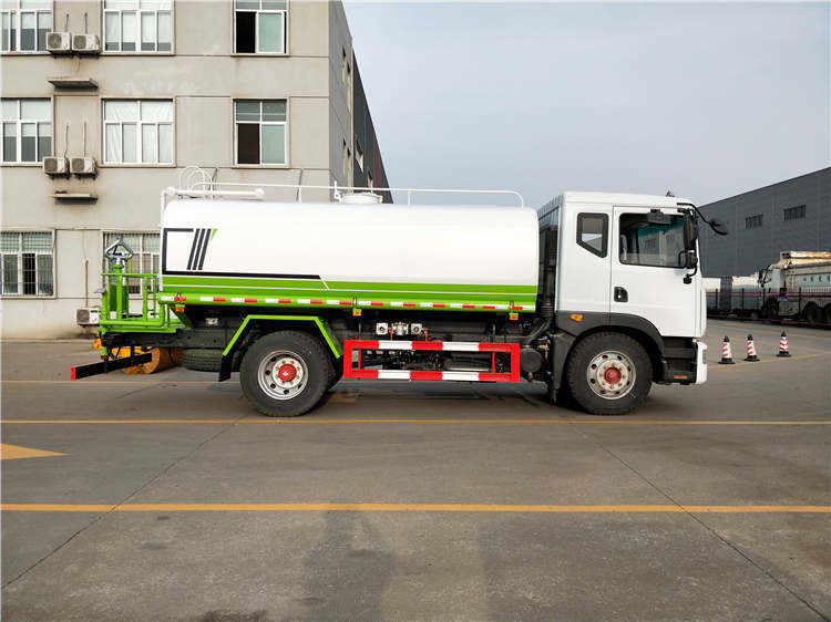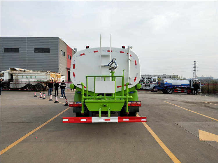 洒水车罐体结构为方圆形,采用优质碳钢板制成,国际先进的机器焊接,对接焊工业。罐体水仓分为2或3室,仓内隔板下端有通孔,具有防波防荡作用。
