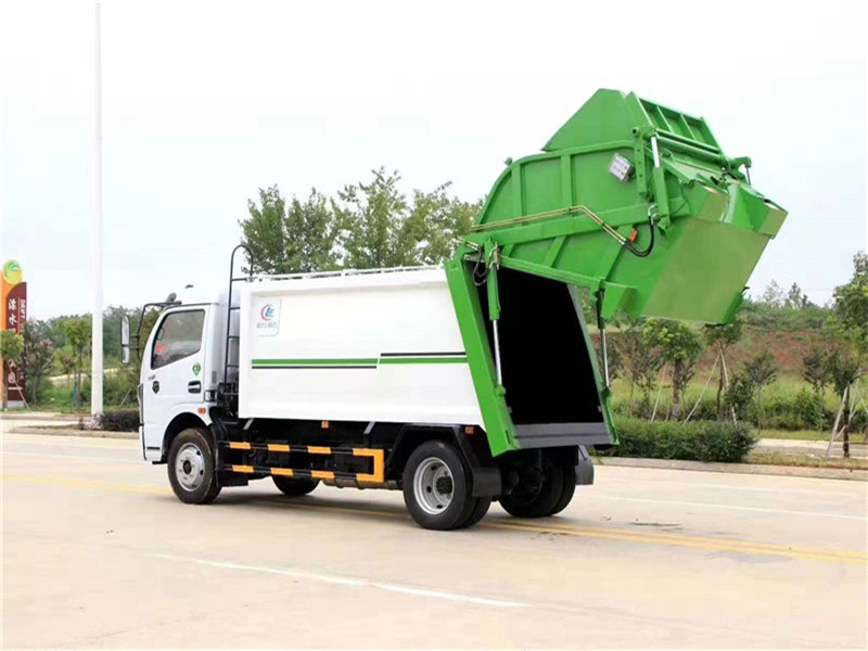 上装配置:弧形厢体,箱体采用高强度钢板,箱体厚度为边4MM底4MM采用嘉善取力器,国内著名品牌油缸,填装器举升油缸带进口平衡阀,高密度高压油管,高压多路阀和油泵,,电控手动双操作器,驾驶室与车尾部双控制箱,采用光电开关,采用CAN总线控制器电控系统,填充器左侧安装一个急停开关,具有自动反复压缩以及蠕动压缩功能,全车活动部位均有黄油嘴带防尘帽,保证黄油能进入运转内部,尾部带3cm厚橡胶密封压条,带污水收集箱,带污水槽。尾部带翻转上料机构,可选挂120升、240升、660升塑料桶或者铁桶。