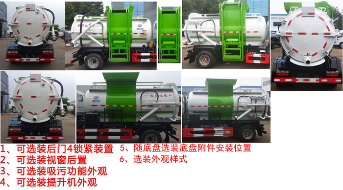 | 配置 | 1、仅选用3308mm轴距底盘改装。2、该车可选装内部推板、加热装置,不影响整车外观,但会引起整车重量变化,该车可选装A:内部推板装置B:内部加热装置C:真空吸污装置,当无选装装置时:整备质量/额定载质量对应关系为(kg):4370/2860;当选装A、B、C装置中任意一项配置时,整备质量/额定载质量对应关系为(kg):4800/2430;当选装A、B、C装置中任意两项配置组合时,整备质量/额定载质量对应关系为(kg):5100/2130;当A、B、C装置全部选装时,整备质量/额定载质量对应关系为(kg):5250/1980。3、防护材料:Q235B碳钢,连接方式:左右侧面及后下部防护均采用焊接连接,后下部防护断面尺寸(mm):120?0,后下部防护离地高度(mm):380。4、ABS型号/厂家:ABS/ASR-12V-4S/4M/襄阳东风隆诚机械有限责任公司。5、专用装置:侧装垃圾桶提升装置,主要用于餐厨垃圾收集及转运。6、随底盘选装驾驶室,选装底盘附件安装位置。该车可选装爬梯,可选装带真空吸污装置上装外观,提升机外观,视窗后置。 | ||