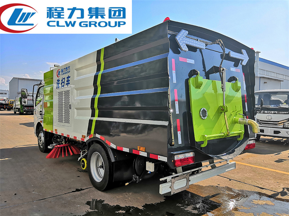 东风凯普特洗扫车采用东风凯普特国V二类底盘改装,加装副发动机、风机、高压水泵、清水箱、垃圾箱、左右立扫、带喷水杆的宽吸嘴、低压冲洗系统、垃圾箱自洁,扫盘降尘系统,液压系统、专用装置电控系统和副车架等改装而成。